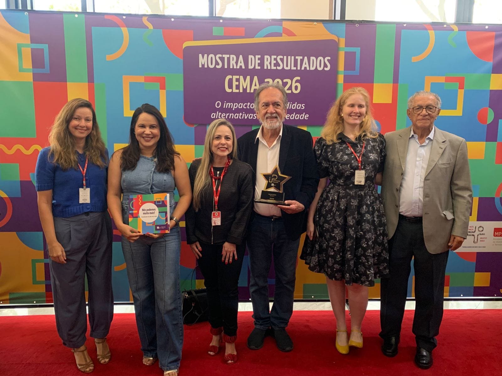 O troféu foi entregue pela assessora de políticas de medidas alternativas, a promotora Thíse Oliveira, acompanhada pelas representantes do Setor de Controle e Acompanhamento de Medidas Alternativas de Brasília I: Jackeline Carvalho, Francine de Melo e Maria Rita.
